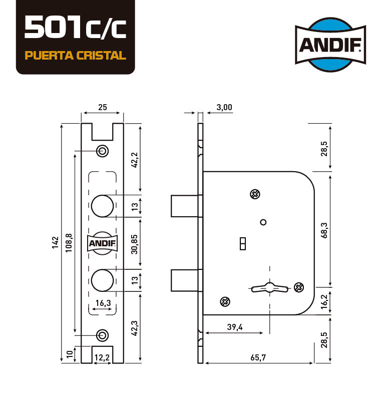 Frente pesado de 3,00 mm. Caja blindada en chapa de hierro espesor de 1,25 mm. 6 combinaciones de hierro galvanizado. Pasador de hierro puro con 2 pernos redondos de 13 mm. Frente y contrafrente 100% bronce corte cristal. 2 llaves 100% bronce. Caja y tapa zincada en azul.
